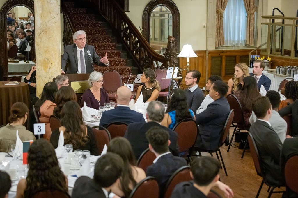 The banquet was marked by many illuminating speakers, among them being; Dr. Rolando Del Maestro, renowned neurosurgeon and the preeminent sponsor of the McGill Osler Library and Osler Society; Dr. Mary Hague-Yearl, head librarian of the McGill Osler Society; Lilly Groszman and Neevya Balasubramaniam, then-presidents of the McGill Osler Society; and one of the winners of the Pam and Rolando Del Maestro Family William Osler Student Essay Awards, Emmanuel Adams-Gelinas.
